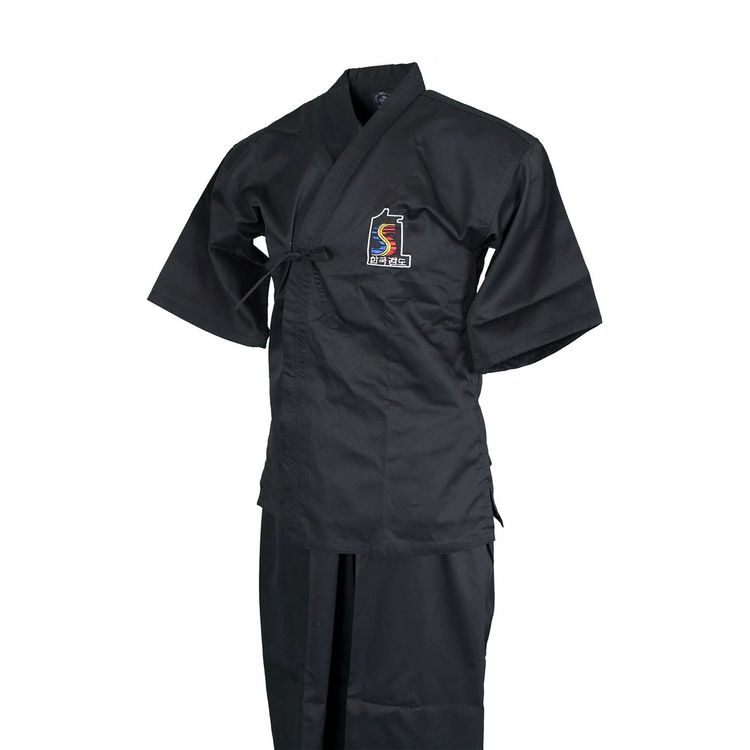 – Han Kuk Kum do in Korean embroidered on the front and back.
